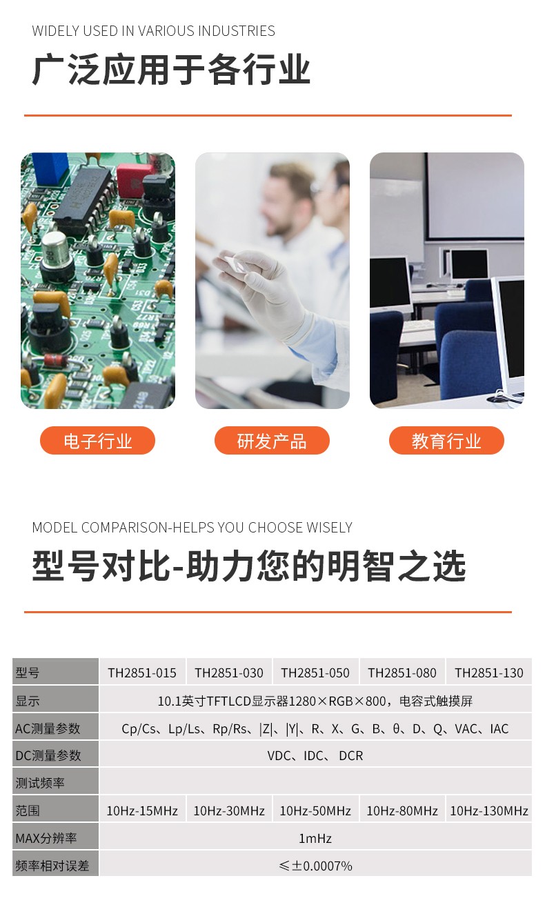 同惠LCR数字电桥测试仪精密阻抗分析仪TH2851-130